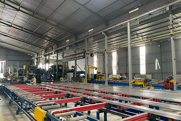 ・ 押出成形ライン:年産能力5,000トン規模 ・ 粉体塗装・陽極酸化設備: 多様な表面処理対応可能 ・ CNC切削加工設備:精密アルミ部品加工対応 ・ 組立・加工ライン:窓枠、ドア枠、ヒートシンクなど加工作業設備 |